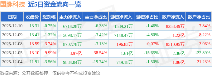 证券之星音讯,到2025年12月10日收盘,邦本科技(002093)报收于13.31元,跌落0.75%,换手率7.85%,成交量79.04万手,成交额10.53亿元。