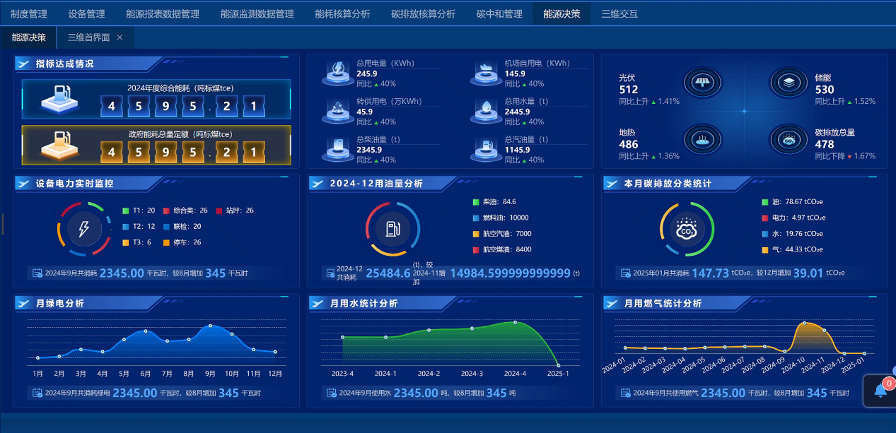 以才智机场高效建造与运营为方针,环绕数字化、智能化推进动力管控体系项目建造,打造了根据数字孪生技能的才智办理渠道。凭借大数据、AI和虚拟现实等先进的技能,整合空间静态数据和实时动态数据,渠道完成了动力体系的全面数字化和智能化办理。三维数字化机场“一张图”具有数据办理、可视化和空间剖析才能,能快速加载海量数据并支撑多事务体系的仿真与优化剖析,为机场减污降碳协同增效供给了强有力的技能支撑。